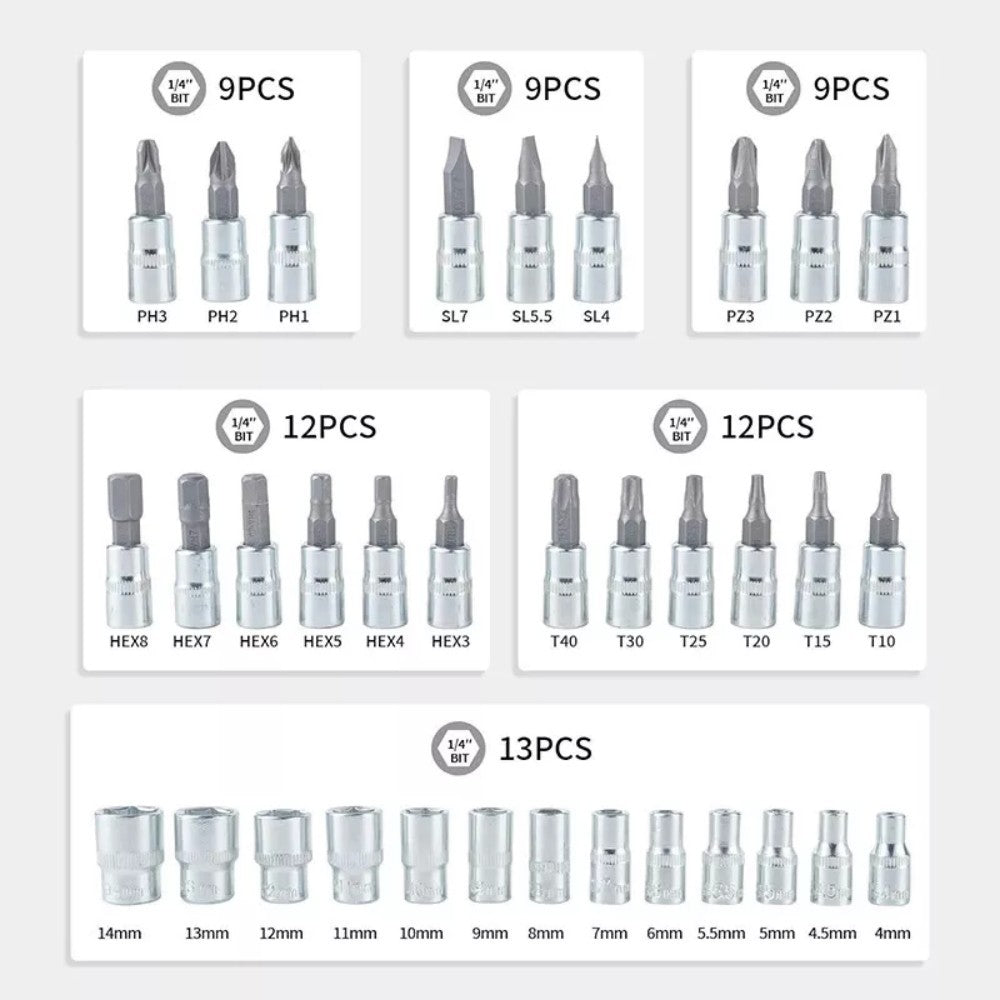 【Product Name】46 Piece Socket Set 1/4" Drive Socket Ratchet Wrench with Metric Drive Socket Set
