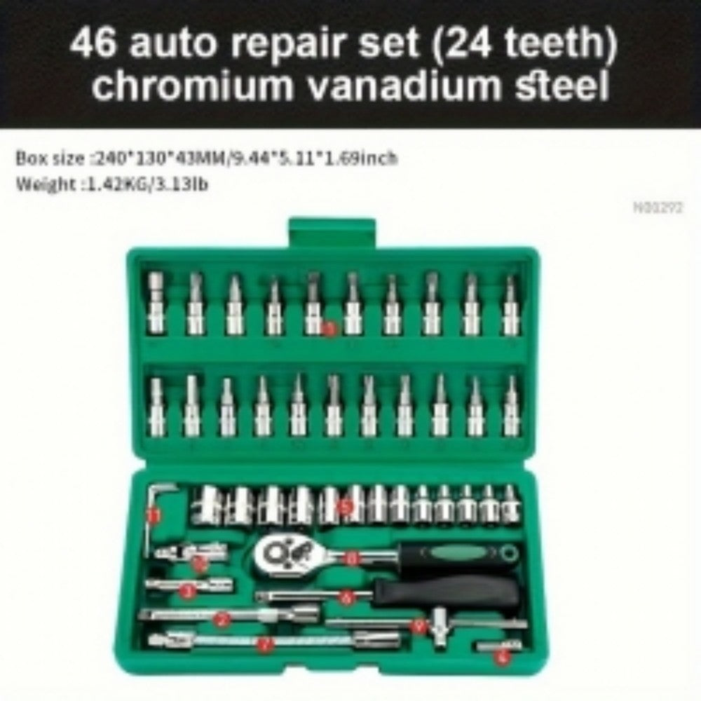 46PCS 1-4 Ratchet Wrench Combination Socket Tool Set Kit Auto Car Repair Tools