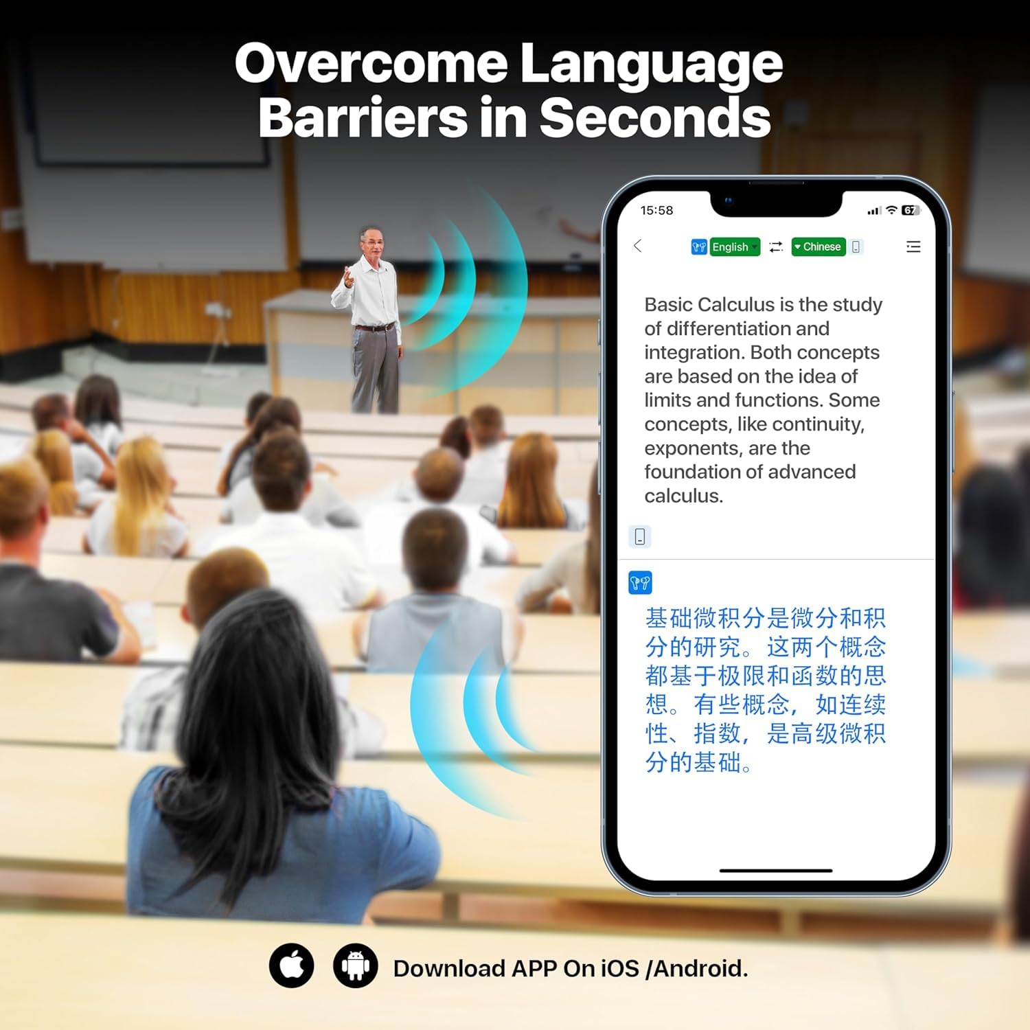 - Real-Time Multi-Language Translation: Supports translation in 144 languages, optimized for international communication (some offline packages require an in-app purchase)