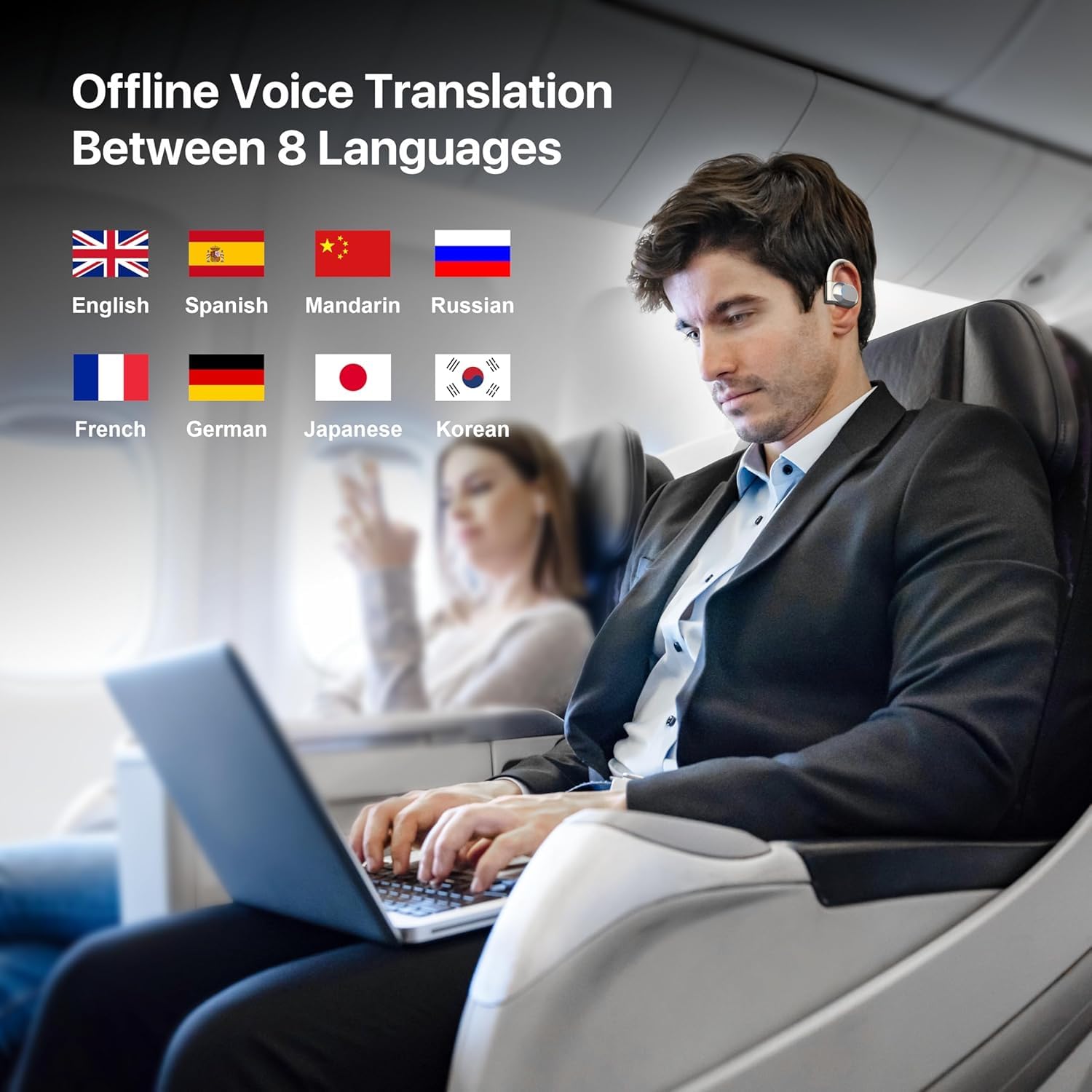 Built for convenience and comfort, these earbuds feature fast-charging technology for minimal downtime and an ergonomic ear-hanging design that allows for extended wear without discomfort. Whether you're traveling, working internationally, or learning a new language, these translation earbuds provide an intuitive and reliable solution for breaking language barriers.
