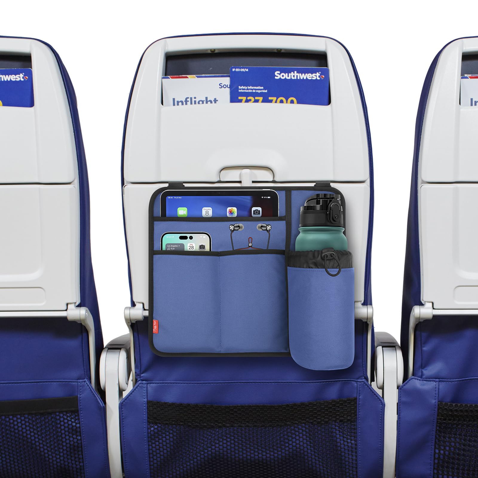 Airplane Seat Back Organizer with Hygienic Tray Table Cover (Blue)