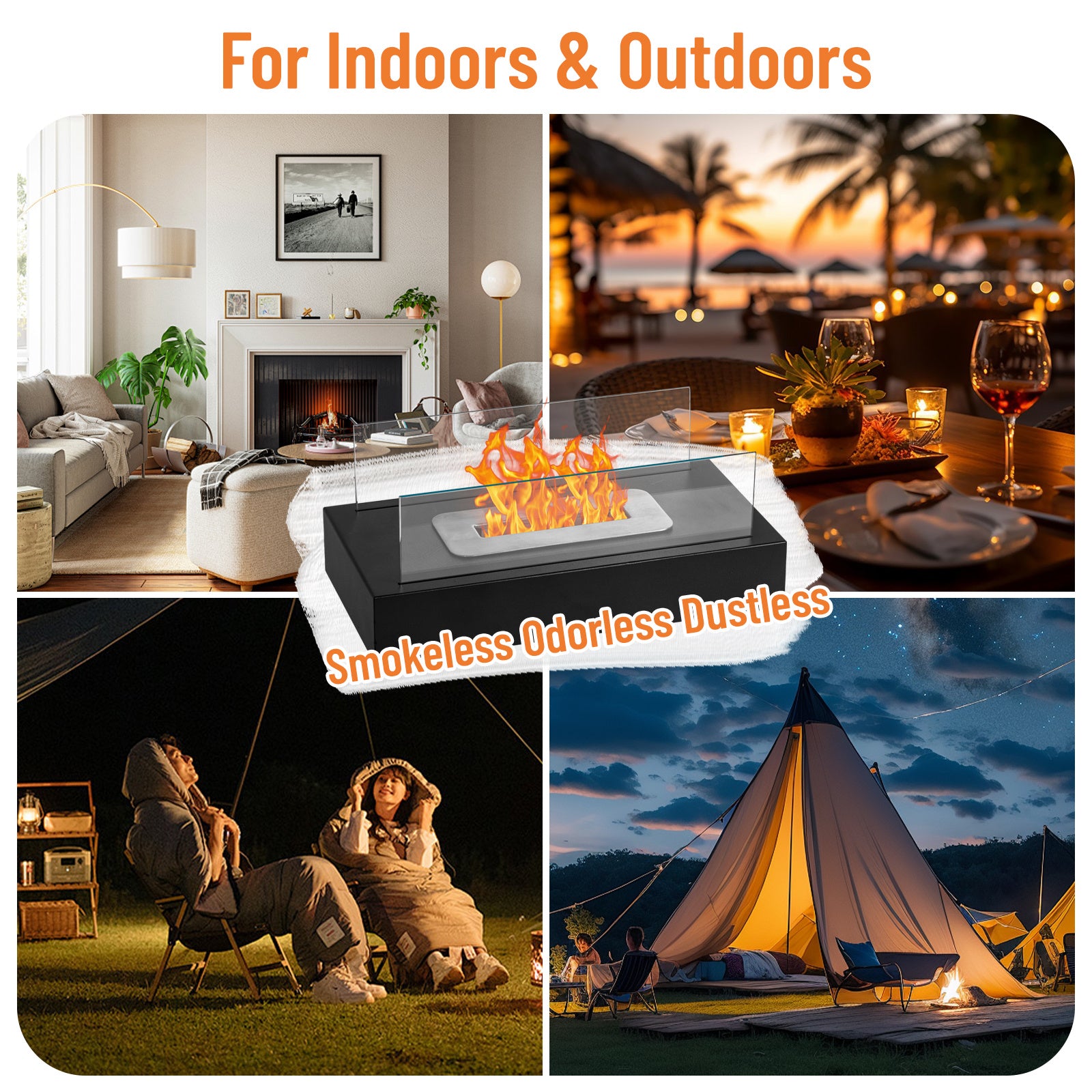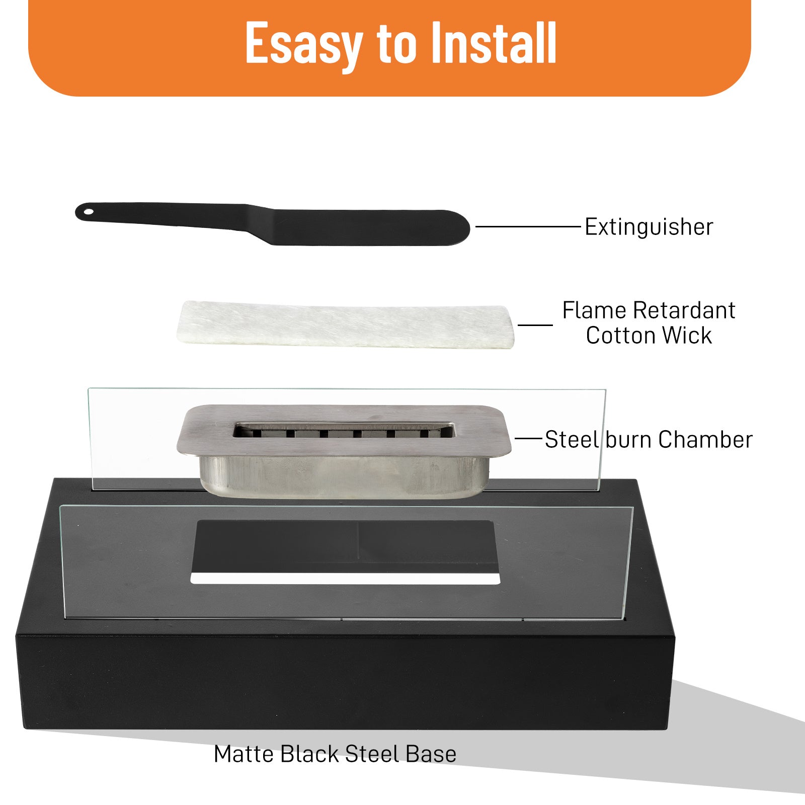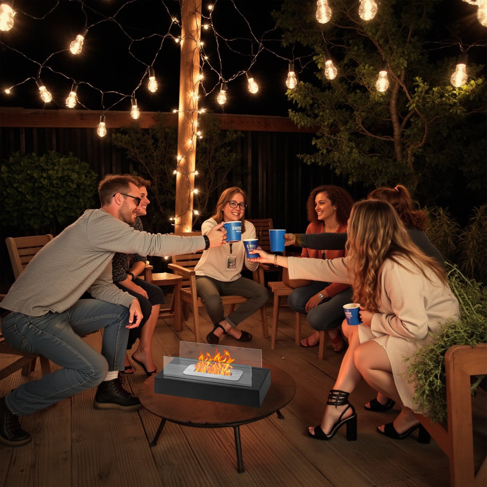 Premium Fire pit:This tabletop fire pit features a durable steel base and four tempered glass panels. The hollow design in the middle and bottom of the fire pit effectively insulates heat, protecting your tabletop. It is easy to operate and can be assembled without tools. Just add fuel and light it to produce flames immediately.