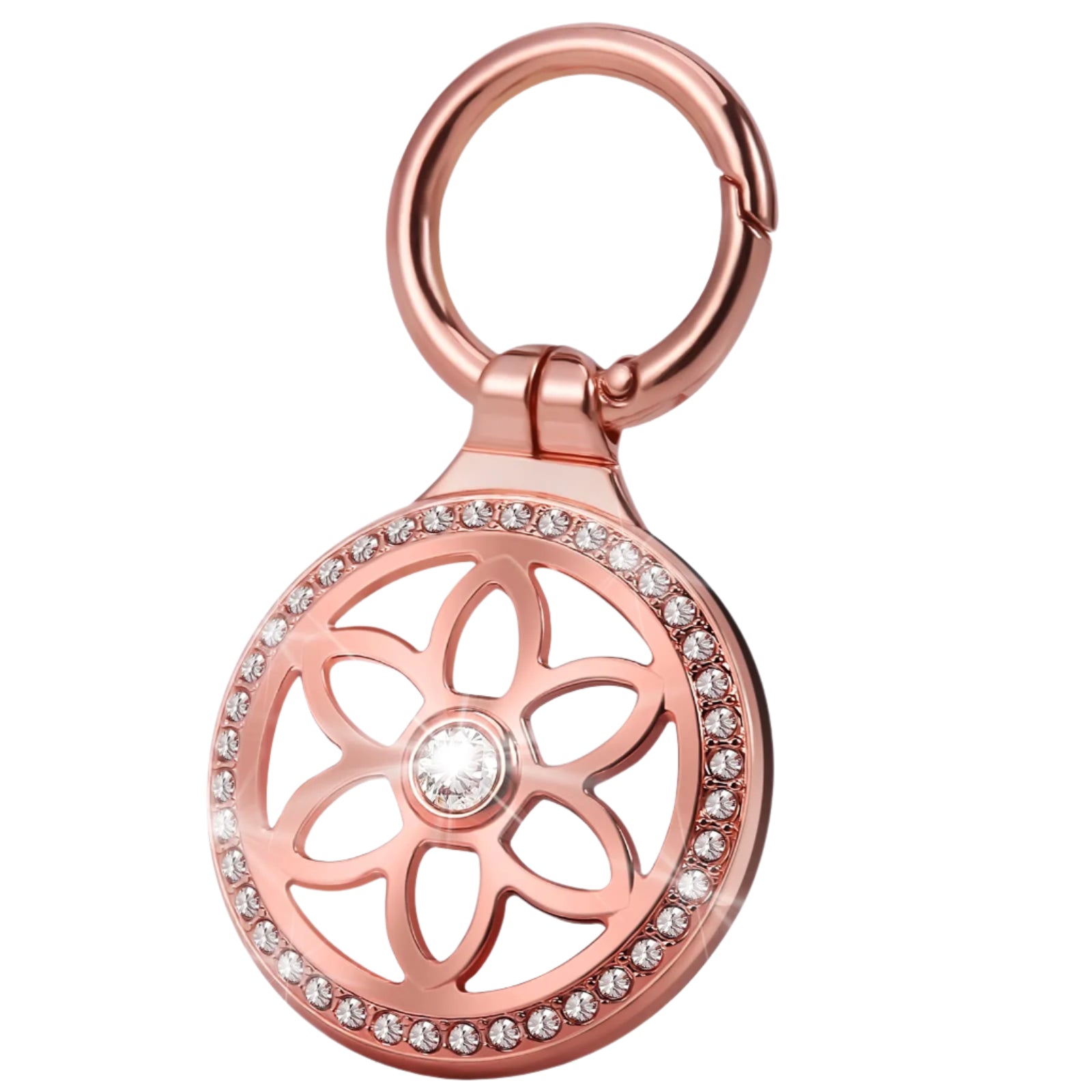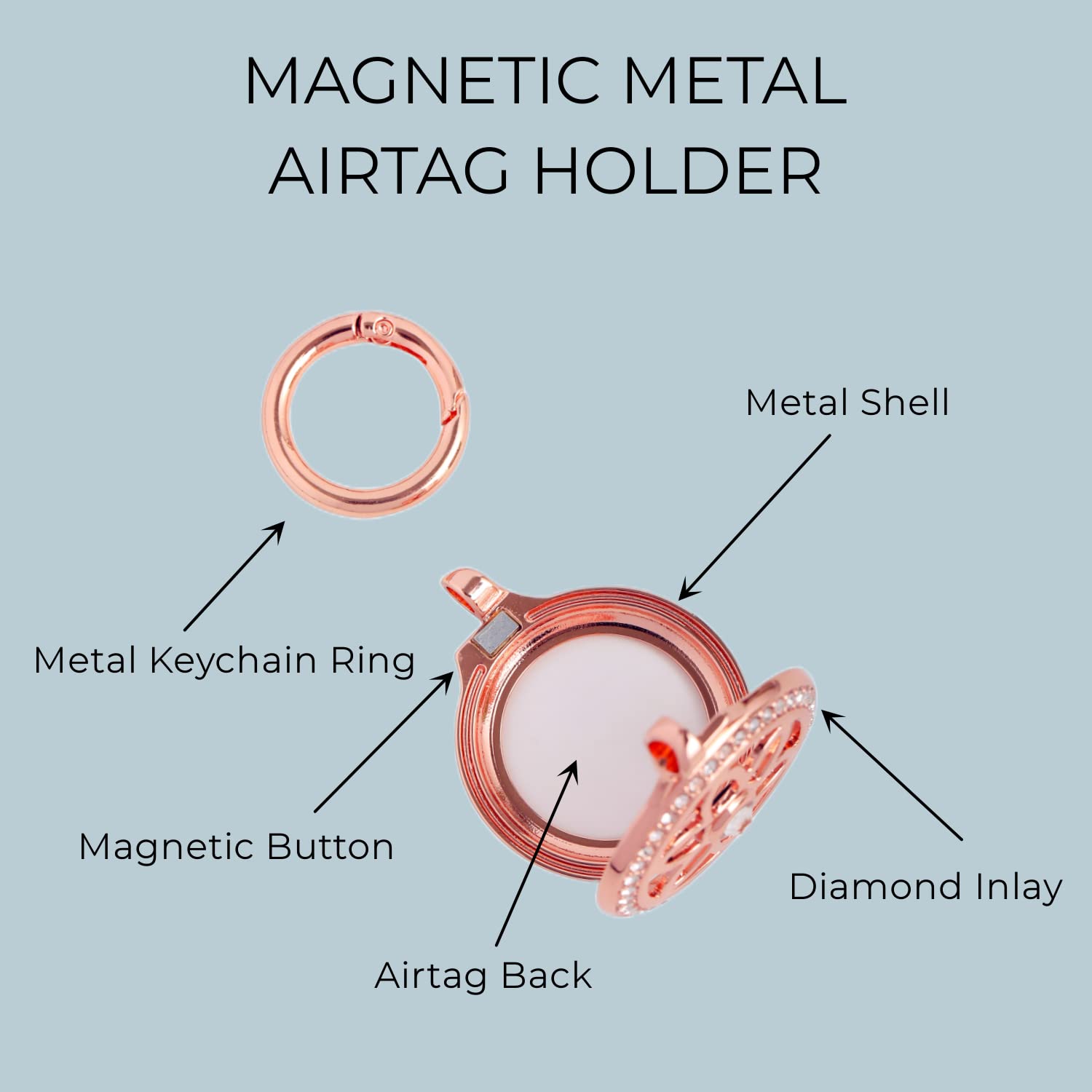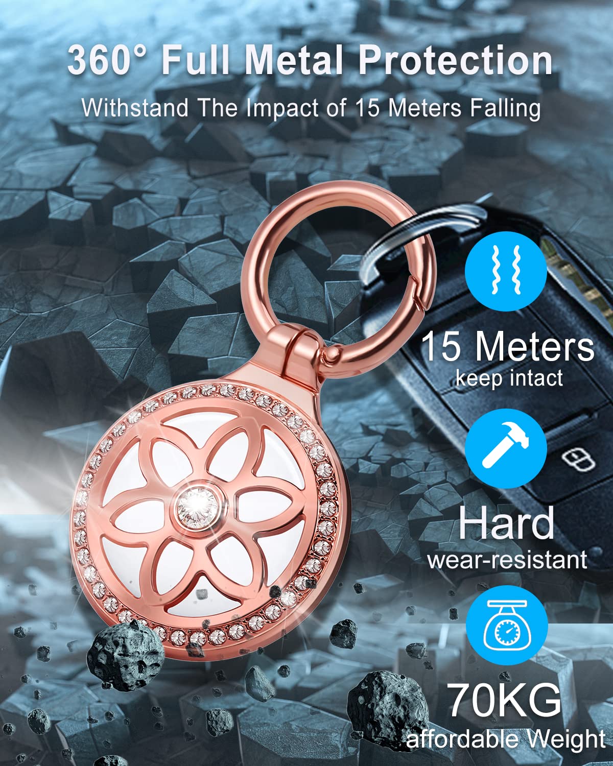 DEERLET Airtag Holder,Metal Badge Rhinestone Airtag Key Chain,Diamonds Shine Air Tag.Holder Keychain,Air Tag Key Chain Compatible Apple Air tag.Rose Gold