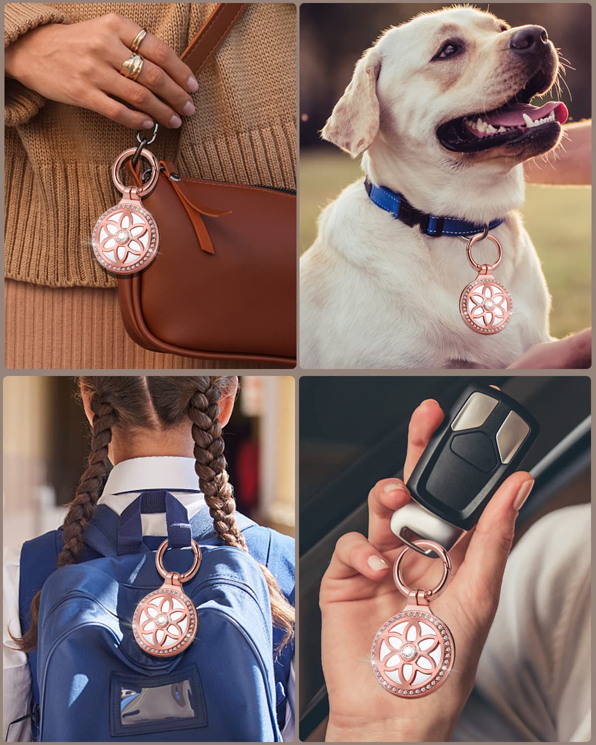 - 【Inlaid Rhinestone Diamonds Shine】 Air tag. holder keychain is studded with 81 pieces sparkling diamonds, the twist lock design with magnetic not only demonstrates conveniently and snugly, but also ensures the safety of apple airtag and is not easy to lose.