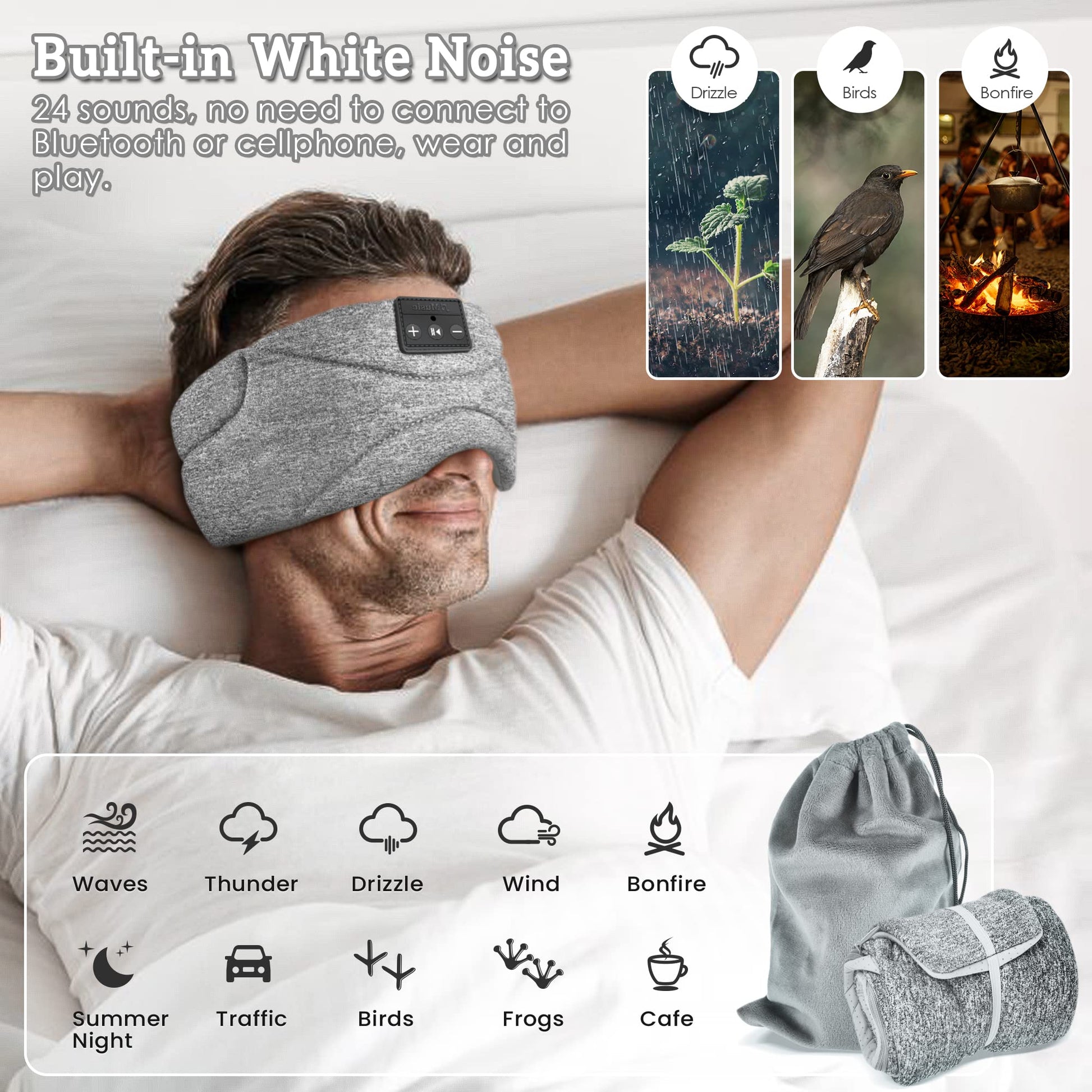 - 【Bluetooth Connect Enable & 24 Built-in White Noise】: No need to connect to Bluetooth or cellphone, wear and play. With pre-recorded audios of white noise inside, our Bluetooth sleep mask is ideal for relaxing or helping fall asleep naturally.