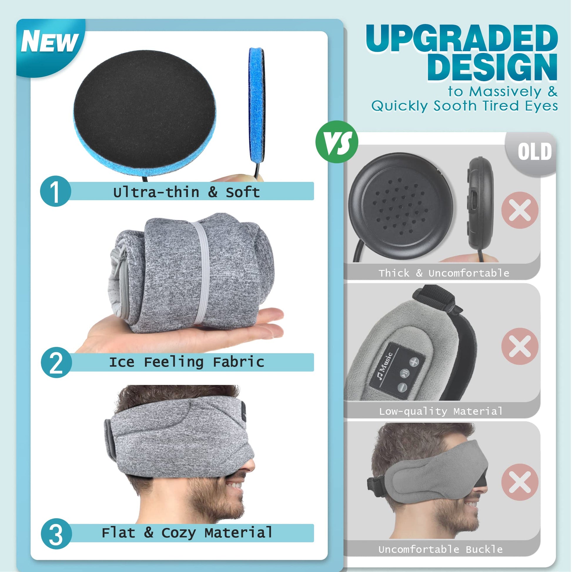 Flashmen Bluetooth Sleep Mask Headphone with White Noise Blackout Light Ice-Feeling Extra Soft Modal Lining Sleep Eye Mask Ultra-Thin Sleeping Headphones