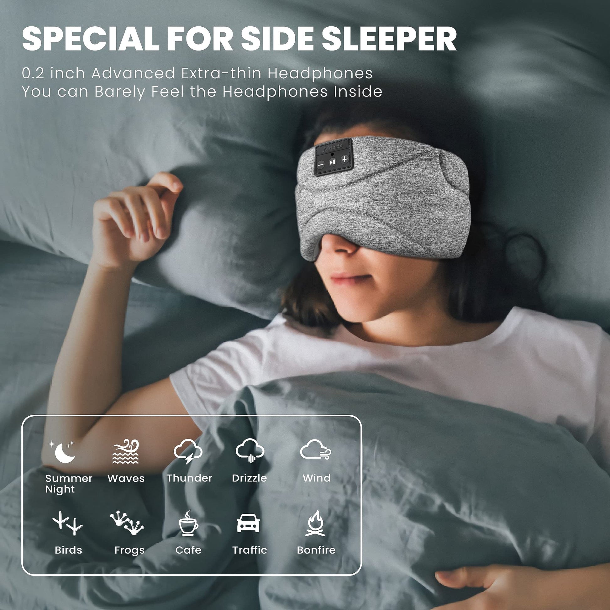 - 【0.2 inch Extra-thin Bluetooth Headphones, Special for Side Sleeper】: The Bluetooth headphones inside is adjustable and removable, easily adjust the position of the Bluetooth headphones to fit your ears. Fully covered with the high quality memory foam, you can barely feel the weight on your ear.