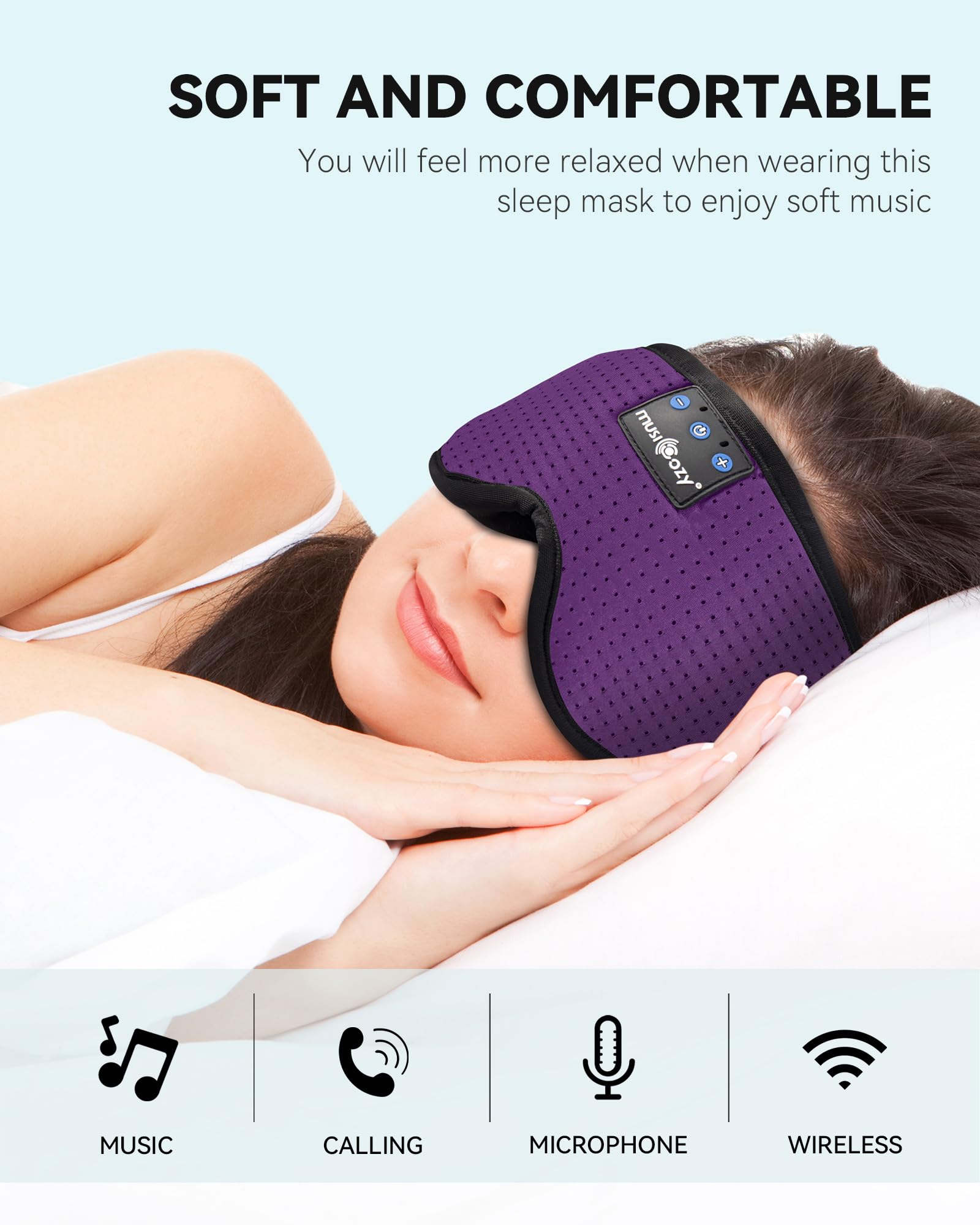 - 【Best Sleep Headphones with Superior HD Stereo Sound♪】MUSICOZY this model of Bluetooth sleep headphone is the latest and unique one in the market! Features latest V5.2 technology and states of the components that produce incredible sound quality with deep bass and crystal clear treble.