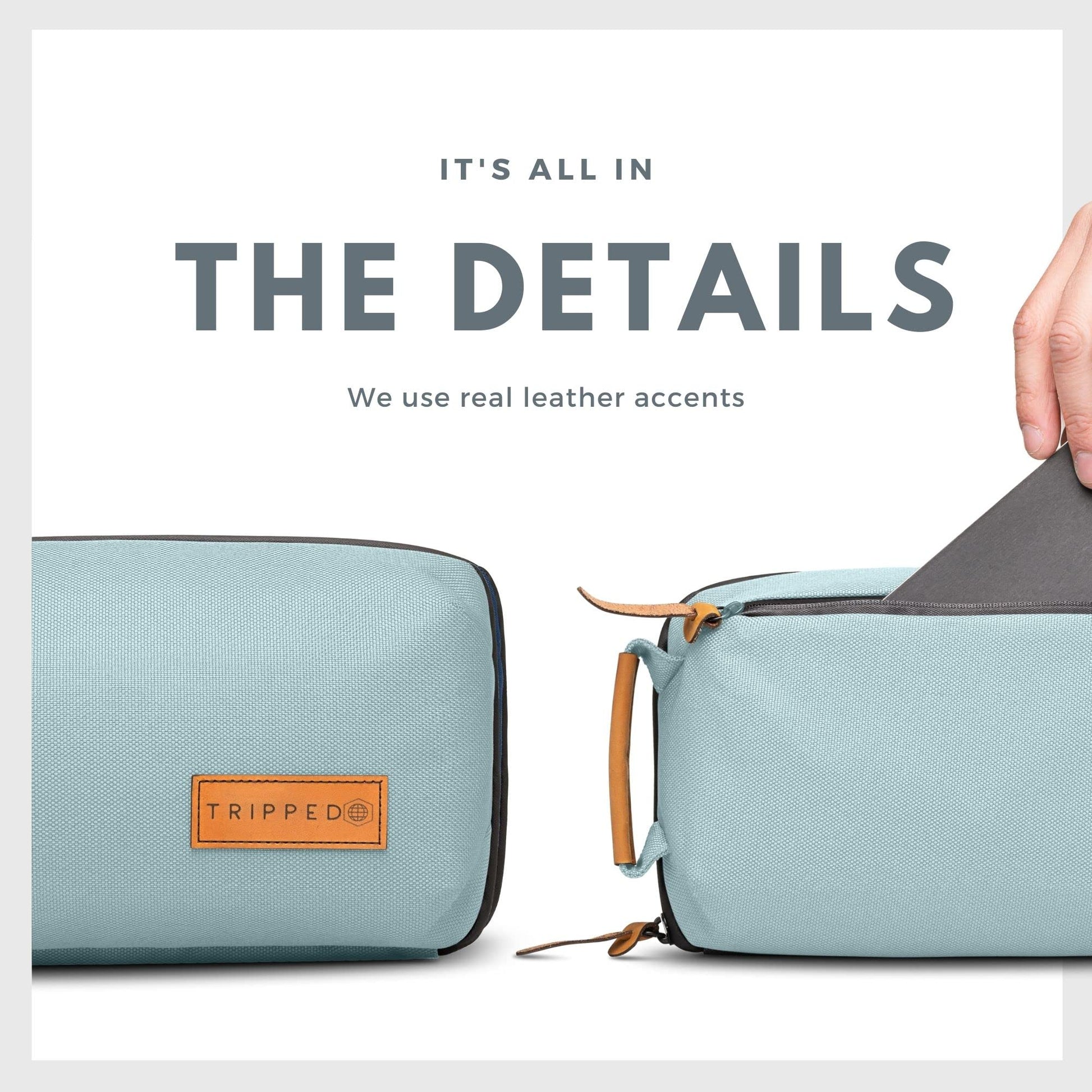 - TRIPPED VS OTHERS: Our minimal design sets us apart with premium leather accents. Additionally, one side of interior has mesh pocket as a great place to pack smaller items, cord and cables. Our bags are also engineered to be the perfect size to carry all your essentials vs the other guys who have made large, bulky cases that don't fit anywhere!