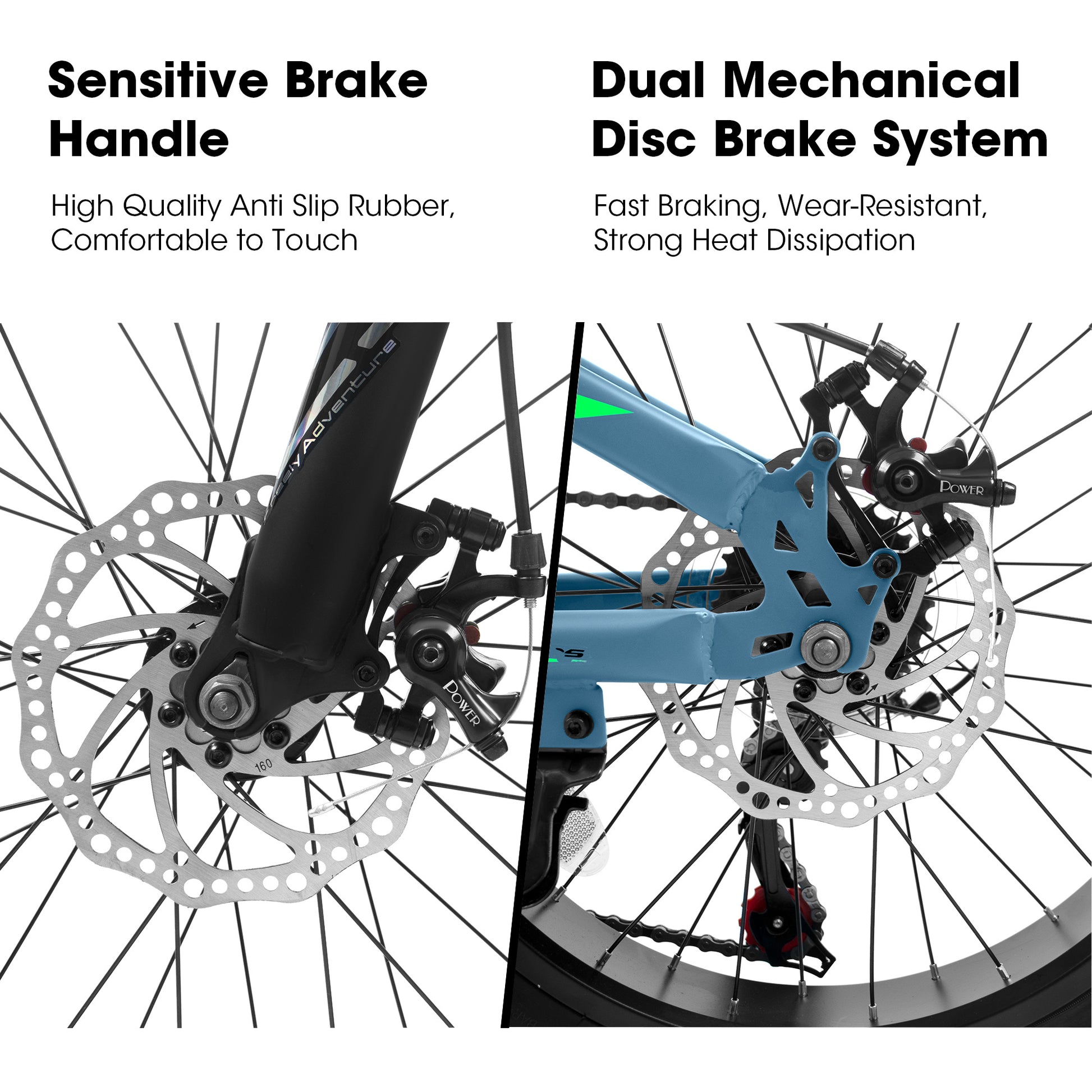 [Double Disc Double Safety]- Elecony boys and girls fat tire bikes feature a dual disc brake system. Both front and rear are equipped with mechanical disc brakes, which can greatly reduce the braking distance and ensure that the child can stop immediately in case of emergency.