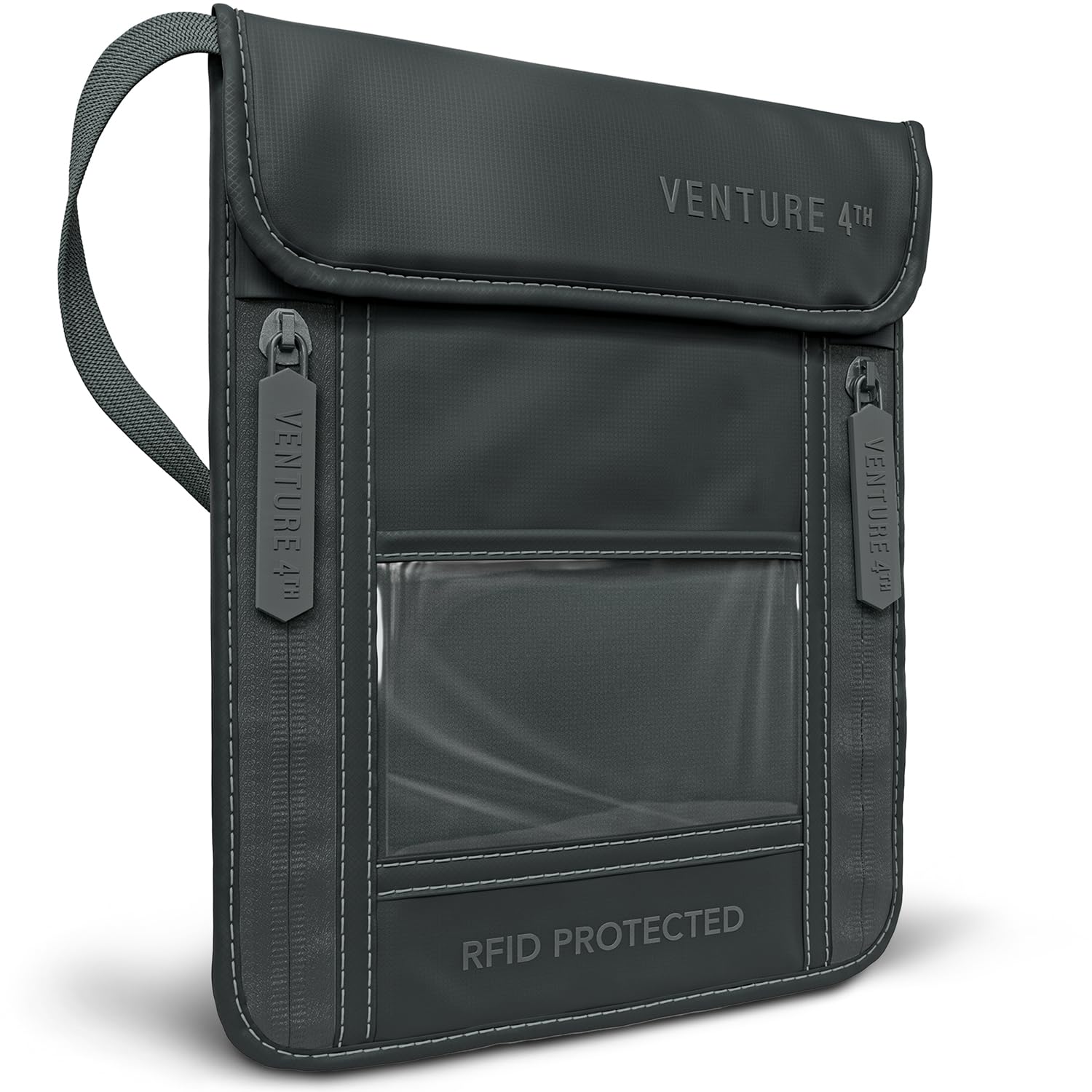 VENTURE 4TH Passport Holder Neck Wallet with RFID Blocking Nylon Lining - Hidden Neck Pouch for Travel (Sleek Gray)