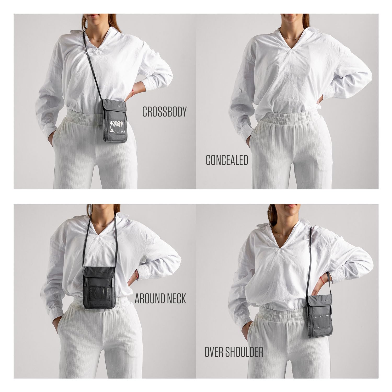 - Wear Multiple Ways: Wear the travel wallet comfortably around your neck, underneath clothing for invisible protection against pickpockets. Alternatively, wear the passport pouch across your body or as a shoulder bag, knowing your data is RFID-protected.