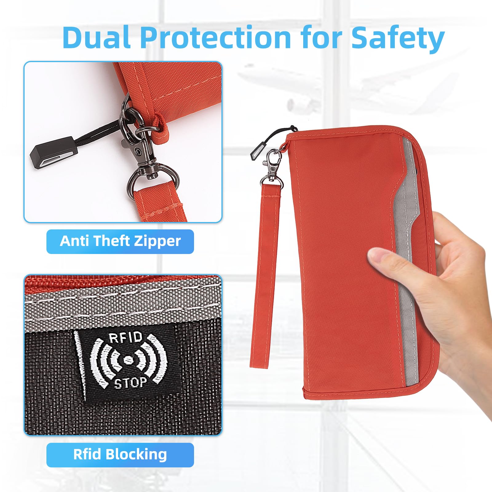 ZOPPEN Passport Holder Family Women/Men, Travel Wallet RFID Passport Wallet Travel Essentials Documents Organizer Zipper Case with Removable Wristlet Strap, Orange
