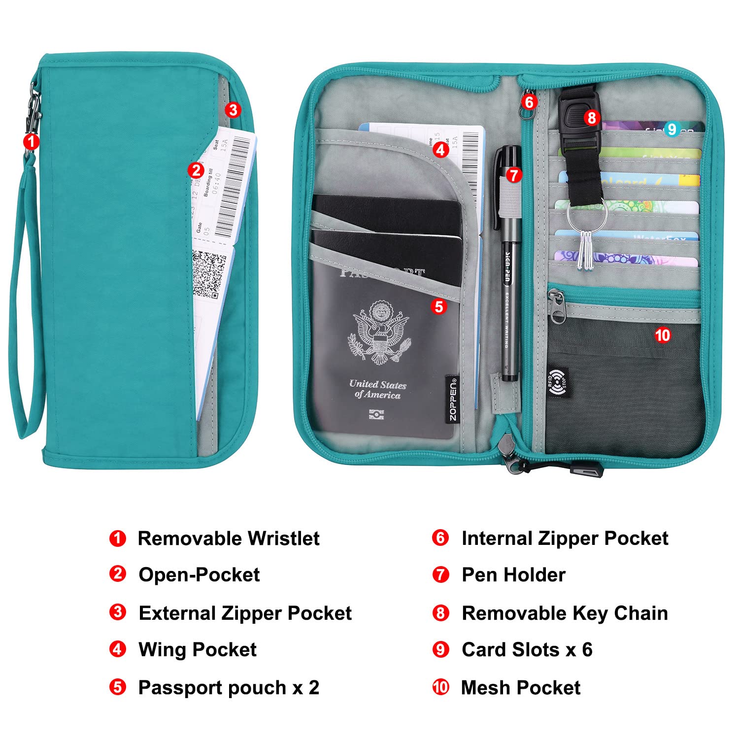 - EASY ORGANIZATION -- Plenty space for storing your travel essentials such as passport, boarding pass, tickets, invoice, pen, checkbook, money, coin, keys and shipping documents